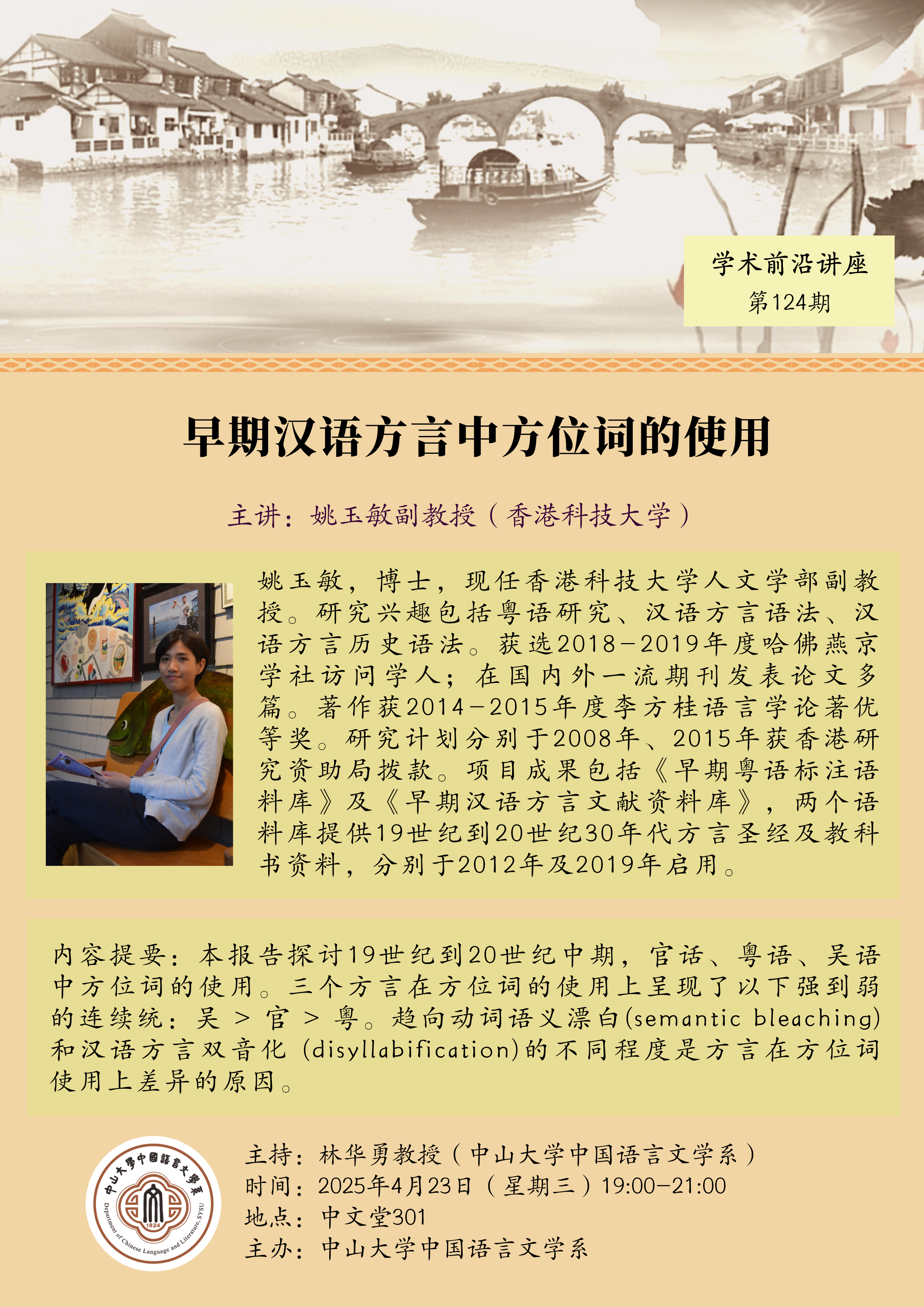 导航痕迹 ok138cn太阳集团中国语言文学系 动态新闻 讲座预告 讲座预告 | 早期汉语方言中方位词的使用 扫描此二维码分享 讲座预告 | 早期汉语方言中方位词的使用 发布人:jiangrt 发布日期:2025-04-18 活动时间 2025年04月23日 19:00 - 2025年04月23日 21:00 活动地址 中文堂301